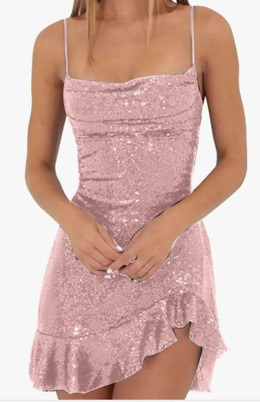 Lace Back Strappy Sequin Dress in Chocolate Brown or Pink