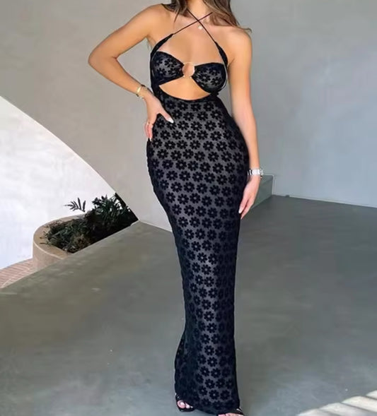 Halter Printed Cut Out Maxi Dress