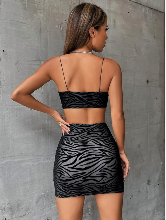 Cross Over Crop and Slit Skirt Co-Ord in Pink
